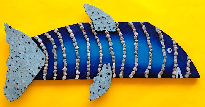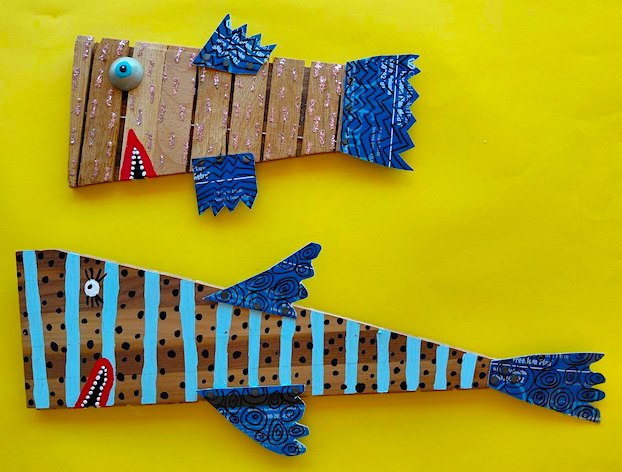 Fish 1, small fish, 5.5" x 10" Fish 2, blue striped fish, 16" x 6" both made in NYC in 2006 small fish SOLD thank you Denise Seifried striped fish SOLD thank you Lauren Pinter-Brown in Beverly Hills, CA |