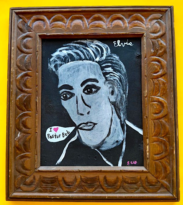 ELVIS, I love Pastor Bob 12.5" x 14.5" $50 made last week from Leslie Mariah Andrews painting from 2023 |
